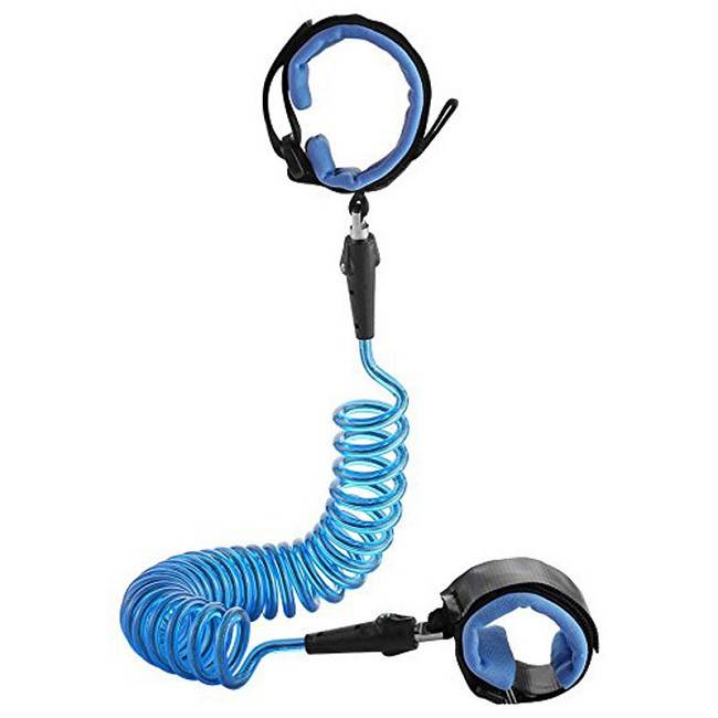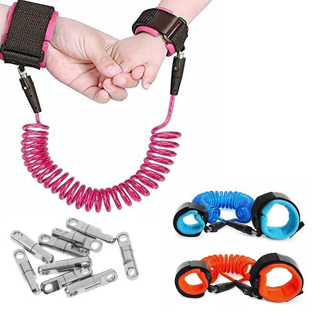 The shrinking chain can extend up to 2.5 meters and is linked to the wrist straps with metal connectors that can freely rotate 360 degrees. The wrist strap circumference of kids hand side (the smaller side) can be adjusted up to 14 CM.